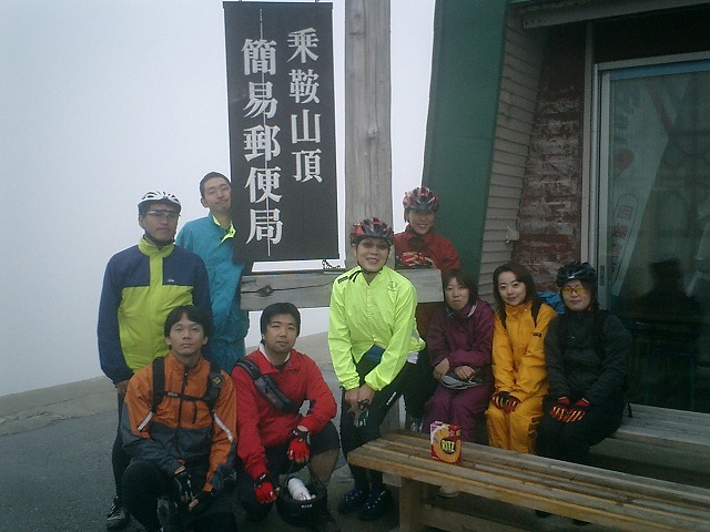昼ご飯を食べ終わって外に出たらすっかり真っ白。雲の中って感じです。 この間に車のドライバーは車を止めていた温泉駐車場まで長野側を戻り、その他の一行は岐阜側に下り一路温泉を目指します。ドライバー達は凄い雨の中を車まで下り、安房トンネルを抜け、車を回します。