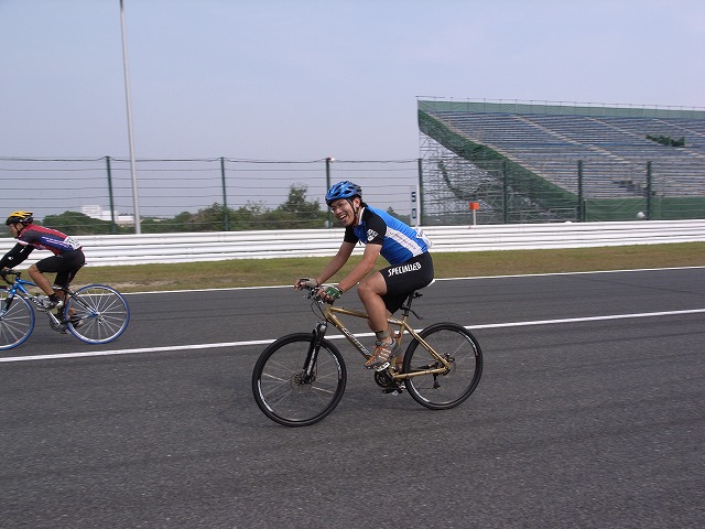 笑顔の貴公子と呼ばれる(良い方の)ナベちゃん。ホントにいつも良い笑顔!ロードが電柱と喧嘩して負傷中のため、MTBでの参加と相成りました。