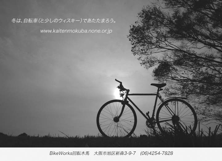 2004年冬。珍しく真面目に作った正統派自転車広告(のつもり)。ターゲットは、大人になった「ロードマン」世代の少年たち。冬の朝、近所の河川敷でロケ撮影。堤防に停めた自転車を土手から仰視するアングルで捉え、空を大きく写し込んでみた。