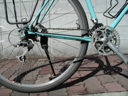 クランクはスギノのインペル。デザインがとっても好きでした。RメカはXT、Fメカは700CX。この700CXは今で言うところのネクサーブシリーズにあたるのかな?要するにクロスバイク用のコンポーネントでした。デザインもサンテ(って解る人すくないだろうなぁ)を少し彷彿させるようなところがあって、個人的にはかなり気に入っていましたが、結構すぐに(確か2、3年)消えちゃいました。