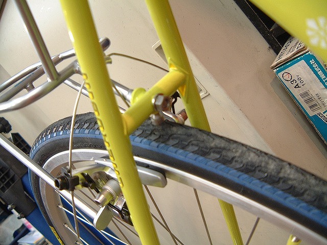 泥よけとフレームの間には革製の間座を入れてある
