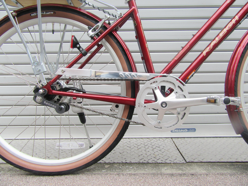 オリジナルはリアのロー側が32Tなので、チェーンカバーはそれに合わせた角度になっていて、リアをシングルにした場合チェーンのラインと若干ズレが出てしまうのが残念。