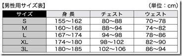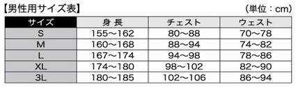 中にたくさん着る方、ガッチリ体型の方は下記のサイズ表をどうぞ。