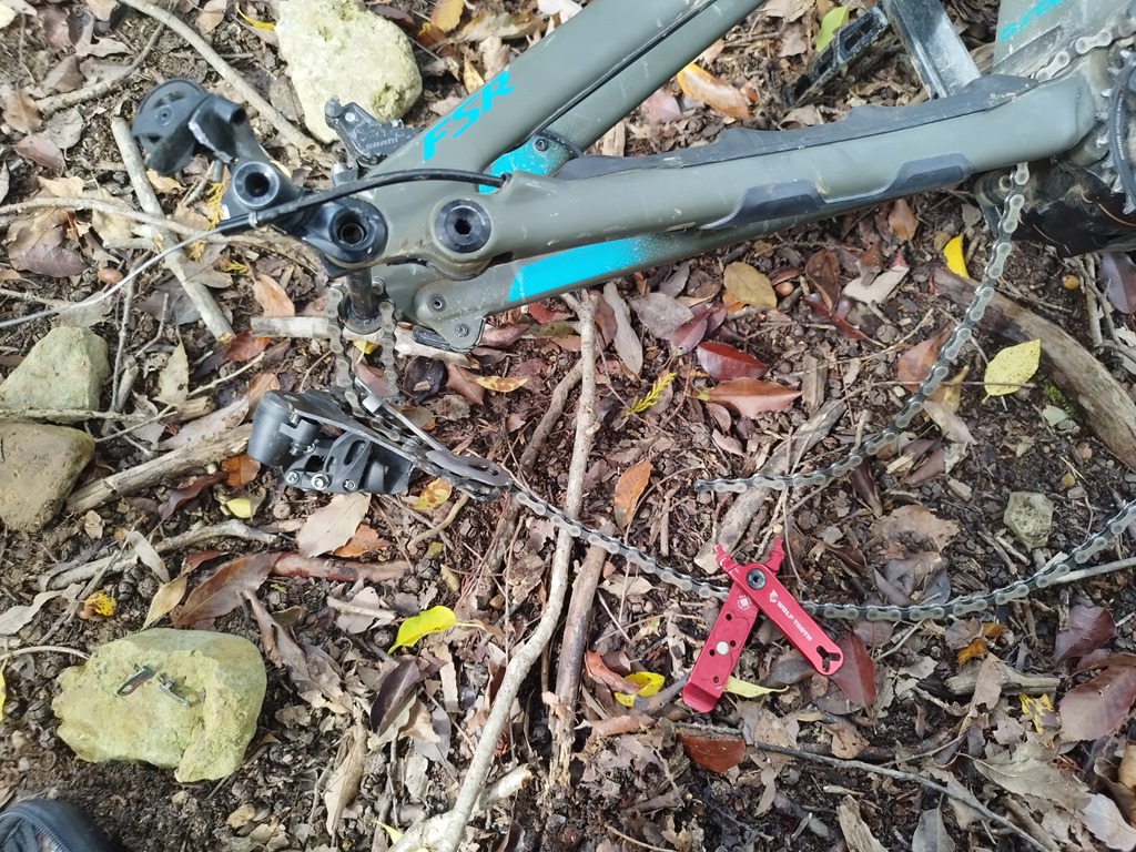 チューンリンクを外して直結させようかと思ったのだけど、よ~考えたらフルサスやからアカンわ、って事でチェーンも外して、まぁ戻りは基本的に下りなのでなんとかなるか。
