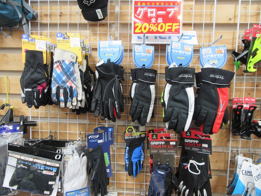グローブセール開催中です 冬のクリアランス!グローブセール 店頭在庫品すべての秋冬用グローブを表示価格より 20%OFFにプライスダウンしてます!(現金特価です。) 春近しとはいえまだちょっと寒いので、15℃対応タイプはまさに今が使い時! 来季のために、いまのお安いウチに極寒用を買っておくのもおススメ。 3月31日(火)までの期間限定&在庫かぎりのセールです。 お早目に~。